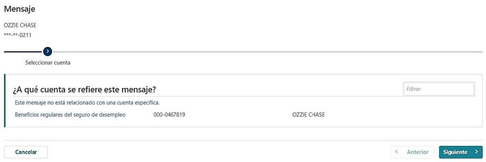 - Si no está seguro(a), puede seleccionar "Este mensaje no está relacionado con una cuenta específica".