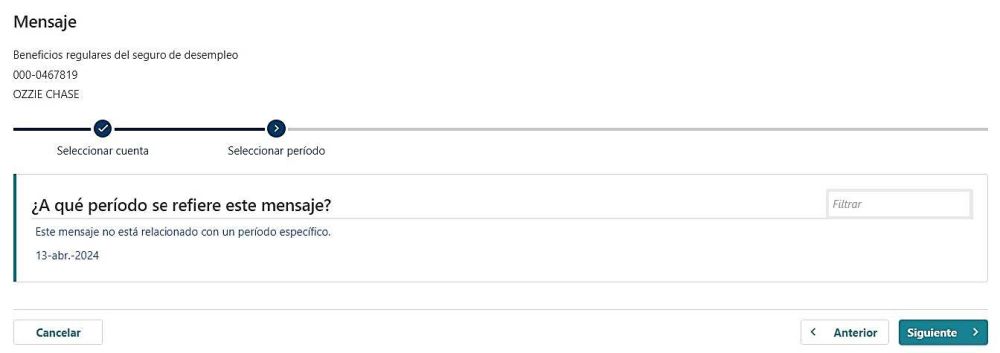 - Si no está seguro(a), puede seleccionar "Este mensaje no está relacionado con un período específico."