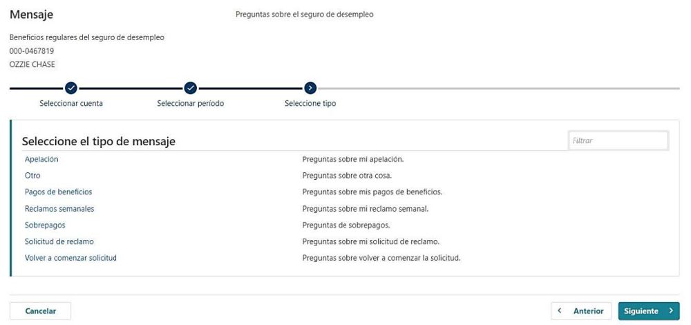 - Por ejemplo, si ha cometido un error en su solicitud semanal de beneficios de desempleo, elija "Beneficios regulares del seguro de desempleo".