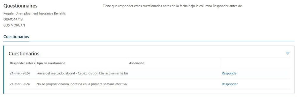 - Seleccione "Responder cuestionario" para darnos más información para que podamos tomar una decisión o avanzar con su solicitud.