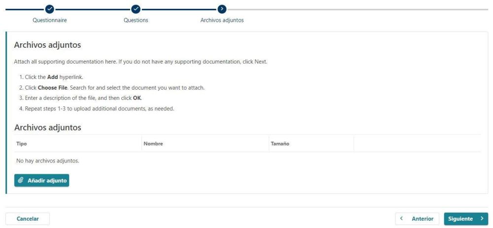 Después de responder a las preguntas, puede adjuntar copias de documentos a muchos cuestionarios.