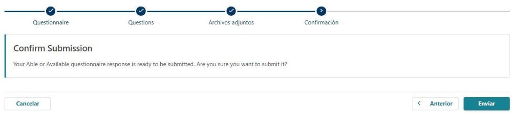 - No podrá cambiar sus respuestas al cuestionario después de seleccionar "Enviar".