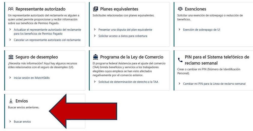 En la siguiente pantalla, seleccione "Buscar envíos" en el panel "Envíos".