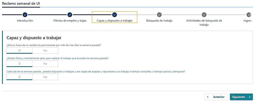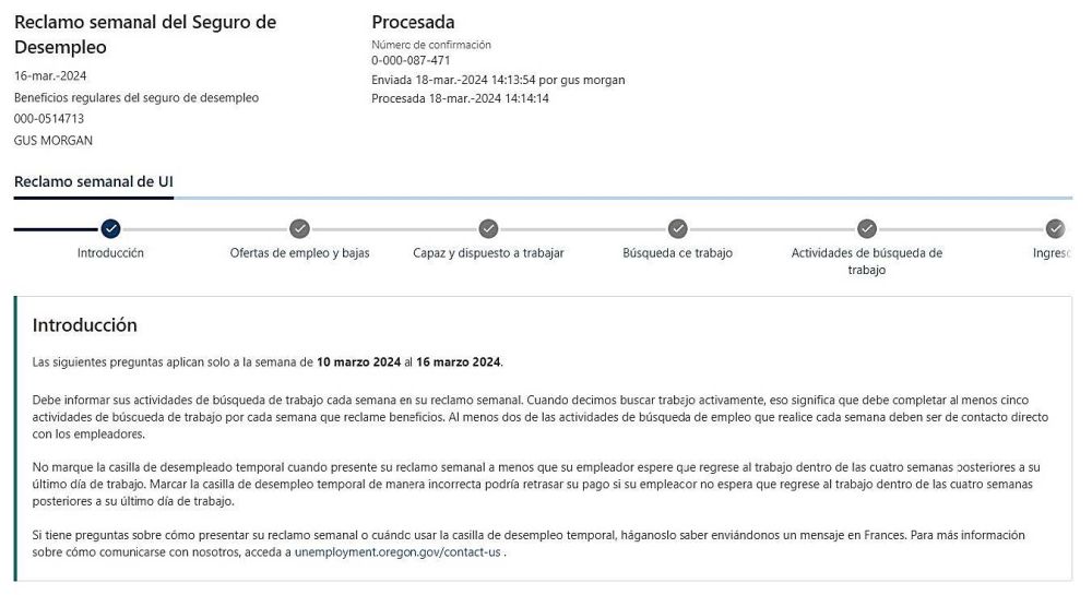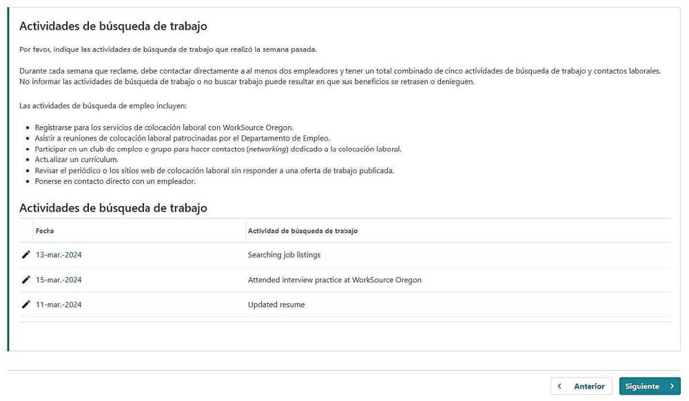 - Esto incluye su solicitud inicial, solicitudes semanales y respuestas al cuestionario.