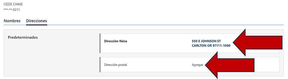 - Si no proporciona una dirección postal, le enviaremos correo a su dirección física.