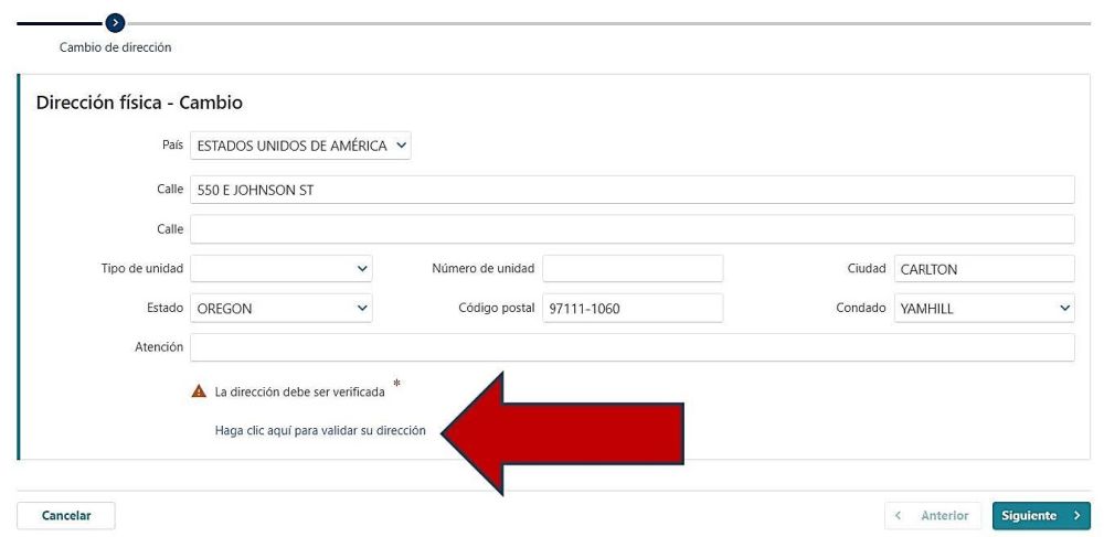 - Después de actualizar la información, verifique la dirección seleccionando “Haga clic aquí para validar su dirección.”