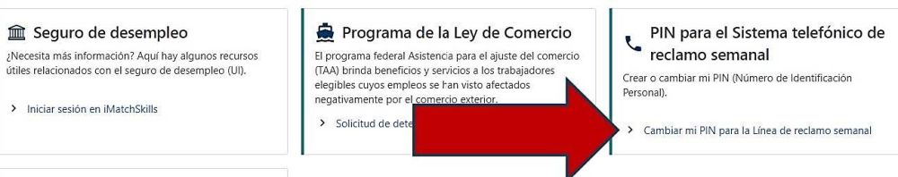 - Seleccione “Cambiar mi PIN para la Línea de reclamo semanal” en el panel “PIN para el Sistema telefónica de reclamo semanal”.