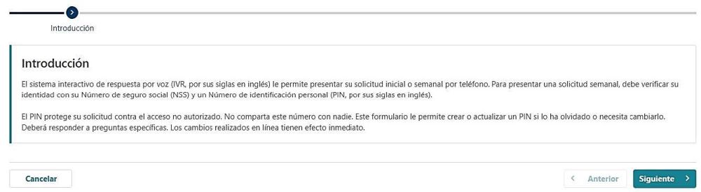 Puede crear un PIN (número de identificación personal) llamando a la línea automatizada de solicitudes semanales al 800-982-8920 y utilizando el teclado de su teléfono. Después de llamar, siga estos pasos: