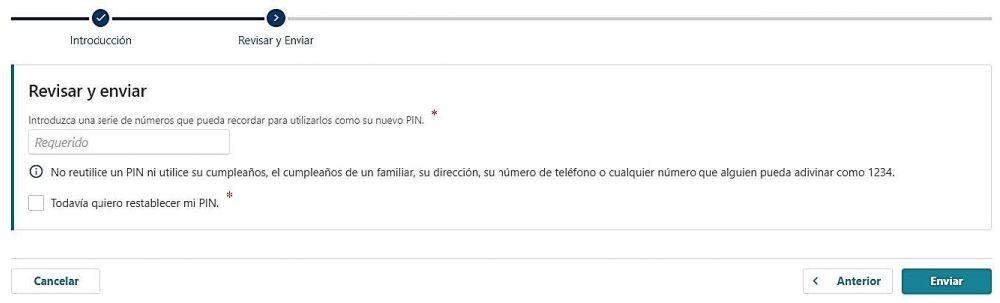 - Seleccione “Enviar” para crear su nuevo PIN.