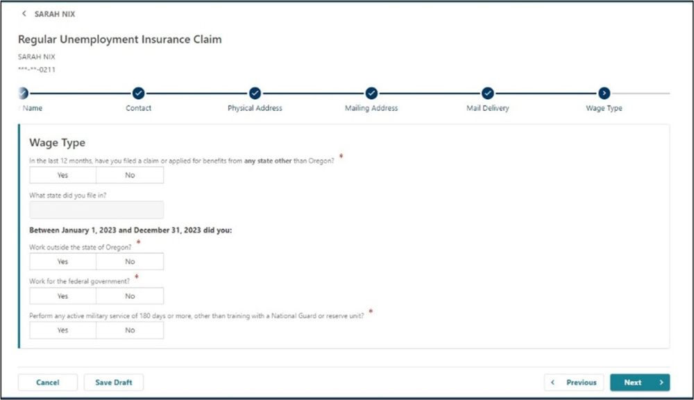 We need to know if you have applied for unemployment insurance in another state, worked outside of Oregon, worked for the federal government, or were on active duty for 180 days or more.
