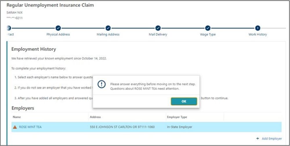 - Make sure you choose the correct employer. Selecting the wrong employer will delay processing of your claim.