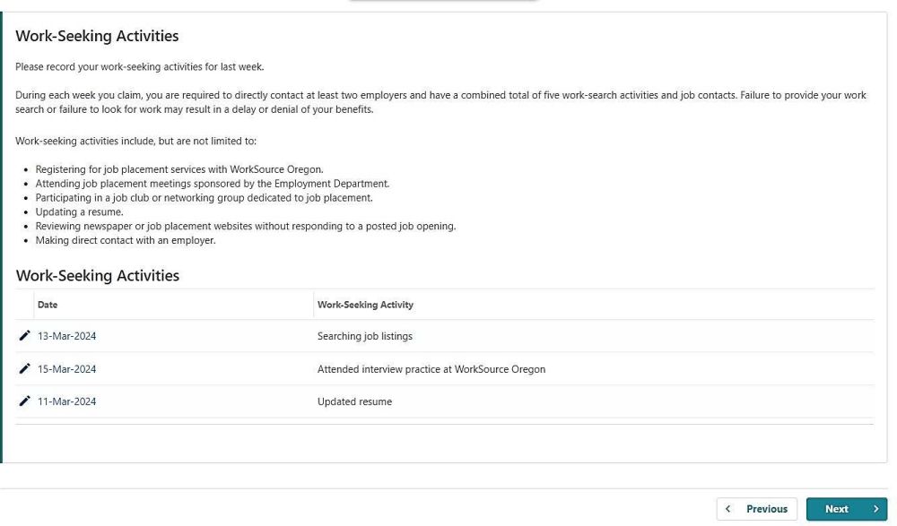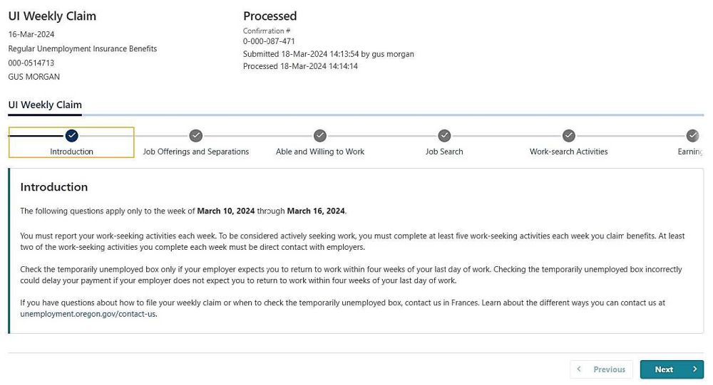 - These include your initial claim, weekly claims, and questionnaire responses.