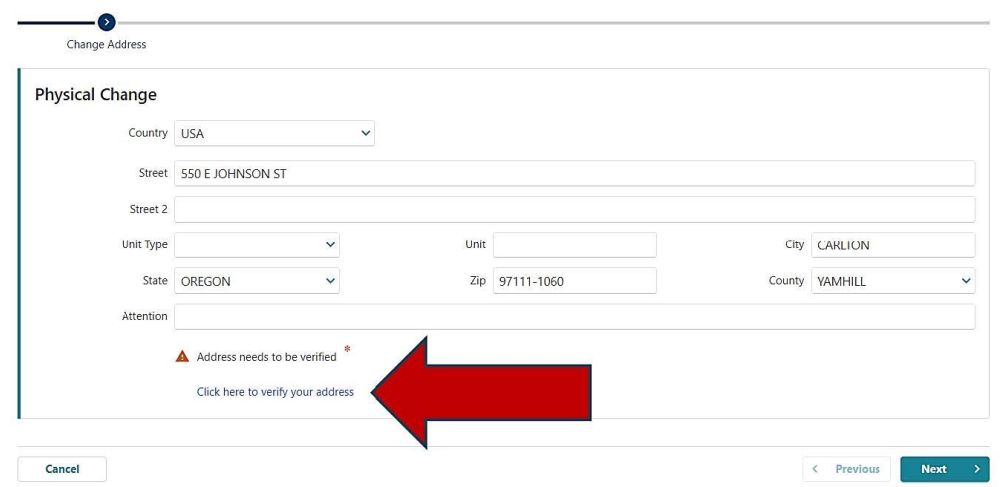 - After you update the information, verify the address by selecting “Click here to verify your address.”